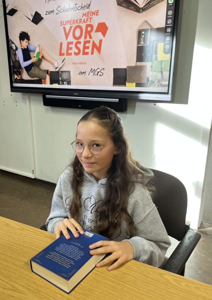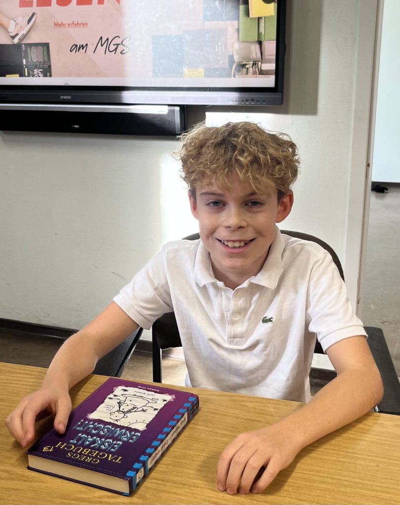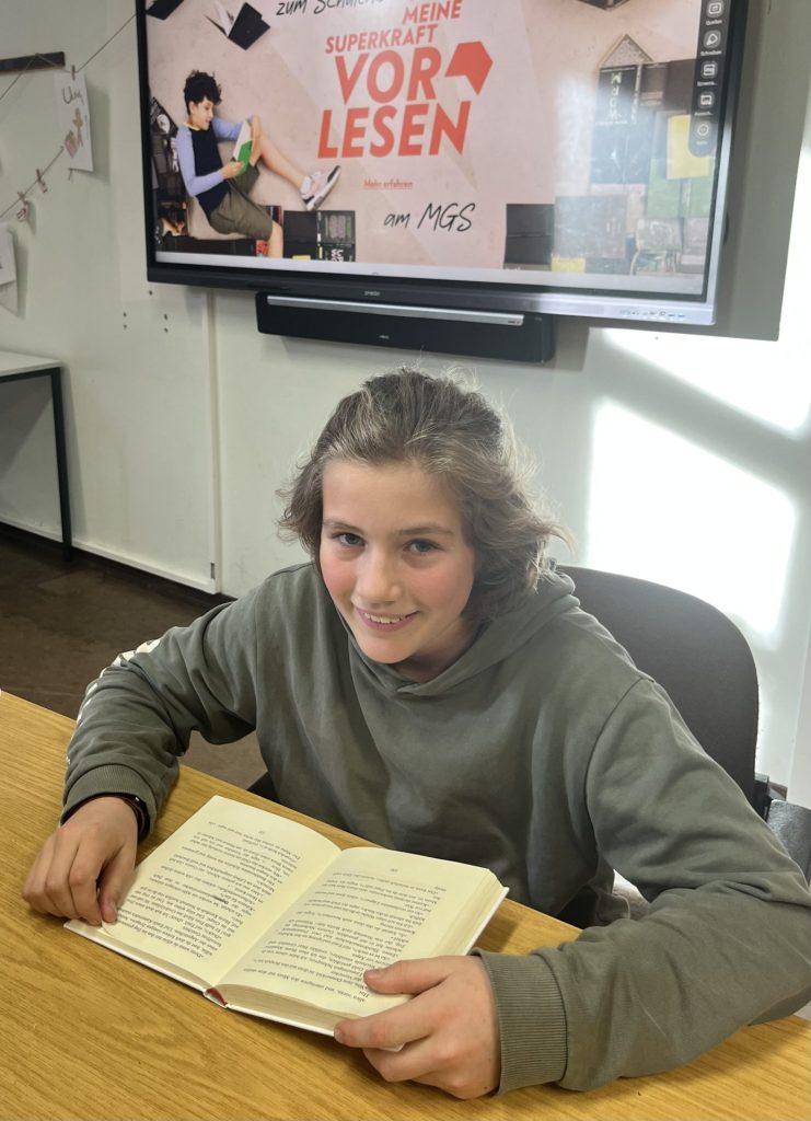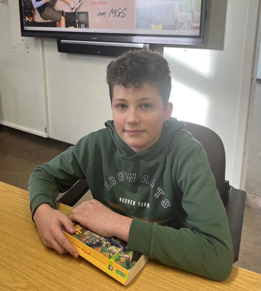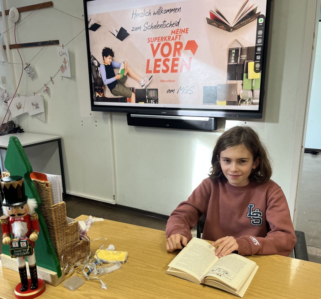 Die Textauswahl unserer Sechstklässler und Sechstklässlerinnen fiel dabei ebenso spannend wie vielfältig aus. Emil präsentierte dem Publikum die Abenteuer von „Detektivhund Dacklinger“, Nino las aus dem klimawandel-kritischen Band „Eiskalt erwischt“ aus der Reihe „Gregs Tagebuch“, Moritz den ersten Harry-Potter-Band „Harry Potter und der Stein der Weisen“, Emilia Kästners Klassiker „Emil und die Detektive“ sowie Anna den märchenhaften Roman „Land of Stories. Ein Königreich in Gefahr“ von Chris Colfer. Anschließend gelang es allen Wettstreitern, sich blitzschnell auf den Fremdtext – „Alles wegen Pepe“, verfasst von der ehemaligen MGS-Schulsozialarbeiterin Regine Umbach – einzustellen und auch diesen gelungen gestaltenden vorzulesen.
