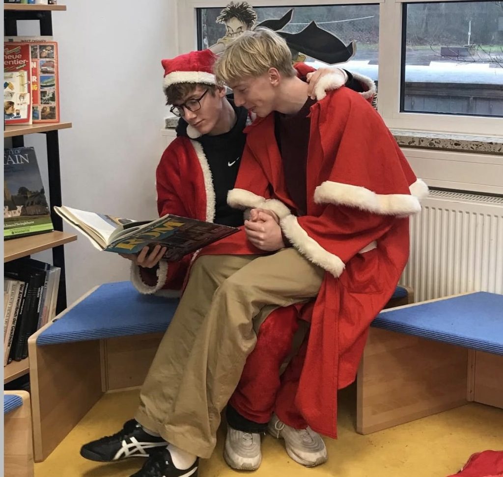 Langsam, aber sicher macht sich die vorweihnachtliche Zeit im MGS bemerkbar. Seit ein paar Tagen schon läuft die Nikolaus-Aktion der SV. Schülerinnen und Schüler können Schoko-Nikoläuse erwerben, die am Nikolaustag von den Mitgliedern der SV als kleine Überraschungen in den Klassen an befreundete Mitschülerinnen und Mitschüler verteilt werden. Auch der jährliche Wettbewerb „Wer schmückt das schönste Klassenzimmer?“ ist in vollem Gange. Die Kunstfachschaft hatte die Schülerschaft aufgerufen, Weihnachtskarten zu gestalten und zur Prämierung einzureichen. Schülerinnen und Schüler des Religionskurses 9 b/d/e bereiten unter Mitwirkung des Gemeindepädagogen Frank Bicks vom ev. Kirchenkreis den Weihnachtsgottesdienst in der Christuskirche vor. Dazu üben sie bereits fleißig das „obligatorische“ Krippenspiel ein und sammeln Videobotschaften in der Schüler- und Lehrerschaft.