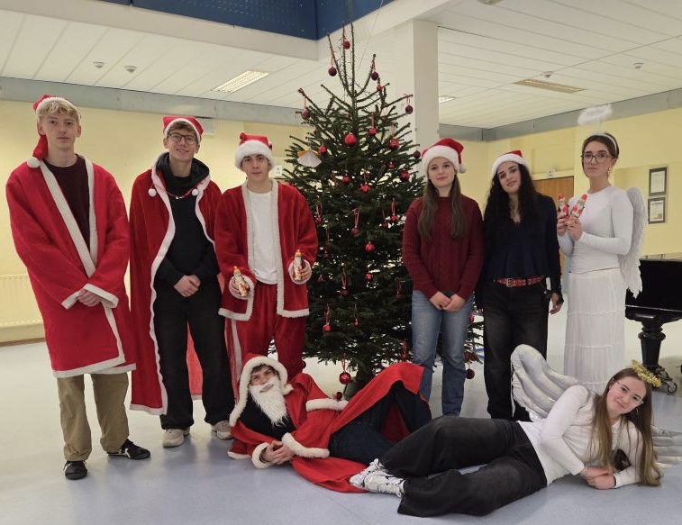 Rauschebärte huschten und Engelsflügel schwebten leise durch die Flure des MGS. Auch in diesem Jahr veranstaltete die SV wieder ihre beliebte Nikolaus-Aktion. Weihnachtsmänner und Engel verteilten Schokoladen-Nikoläuse mit kleinen Grußbotschaften an freudig überraschte Empfängerinnen und Empfänger in den Klassen.
