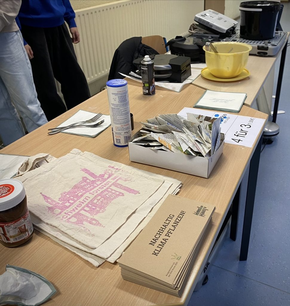 Die Schülerinnen und Schüler setzen sich global fürs Klima und den Regenwald ein. Sie hatten für den Info-Tag tolle umweltfreundliche Produkte erstellt.