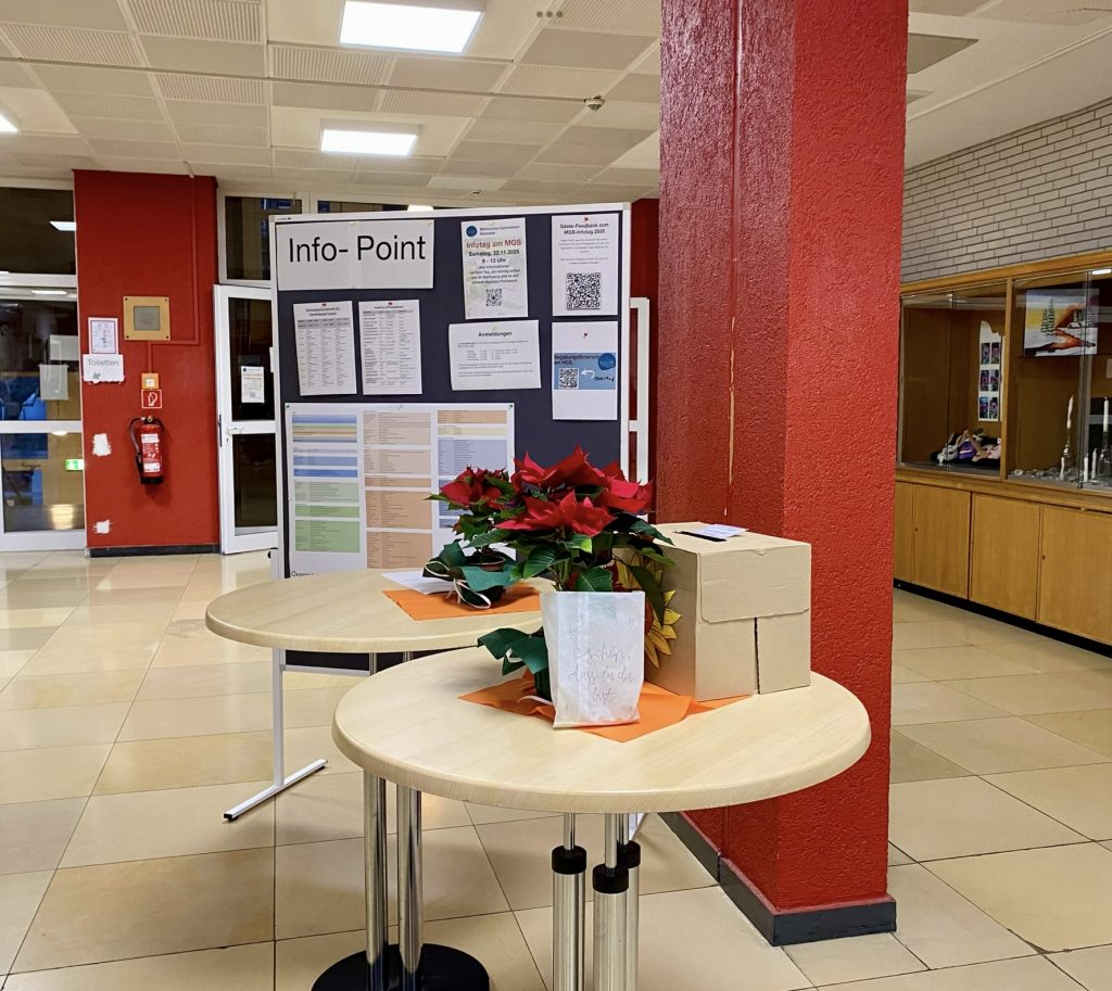Am Samstag, den 22.11.2025, fand am MGS der Info-Tag statt. Am Morgen kamen viele Viertklässlerinnen und Viertklässler der umliegenden Grundschulen mit ihren Eltern, um sich das Gymnasium anzusehen. Es gab viele Informationsstände, z. B. vom Schulsanitätsdienst, den Sporthelfer*innen, der AG Chance e. V. sowie der Klima AG. Wir haben uns ein paar Stände genauer angeschaut und wollen sie euch gerne einmal vorstellen: