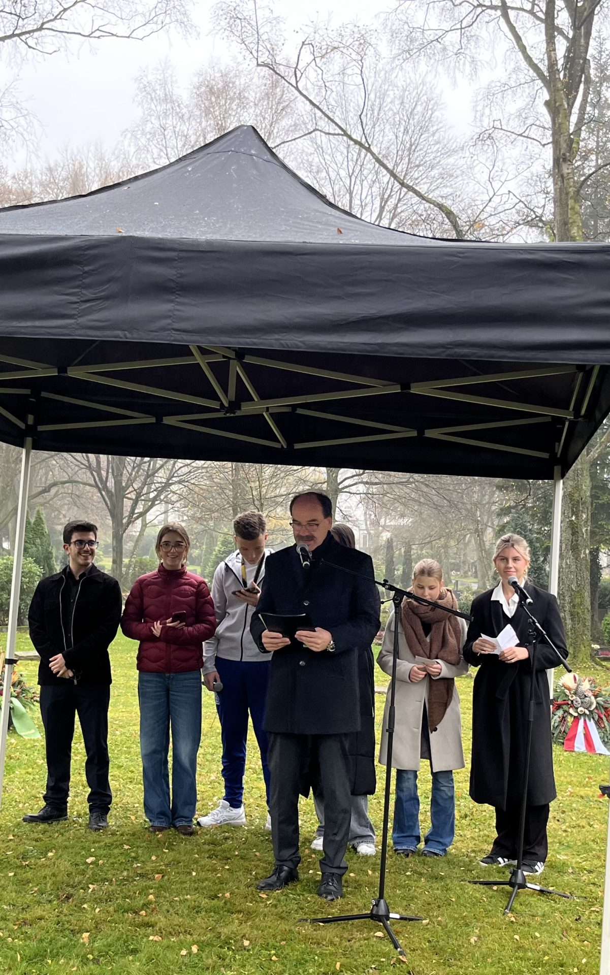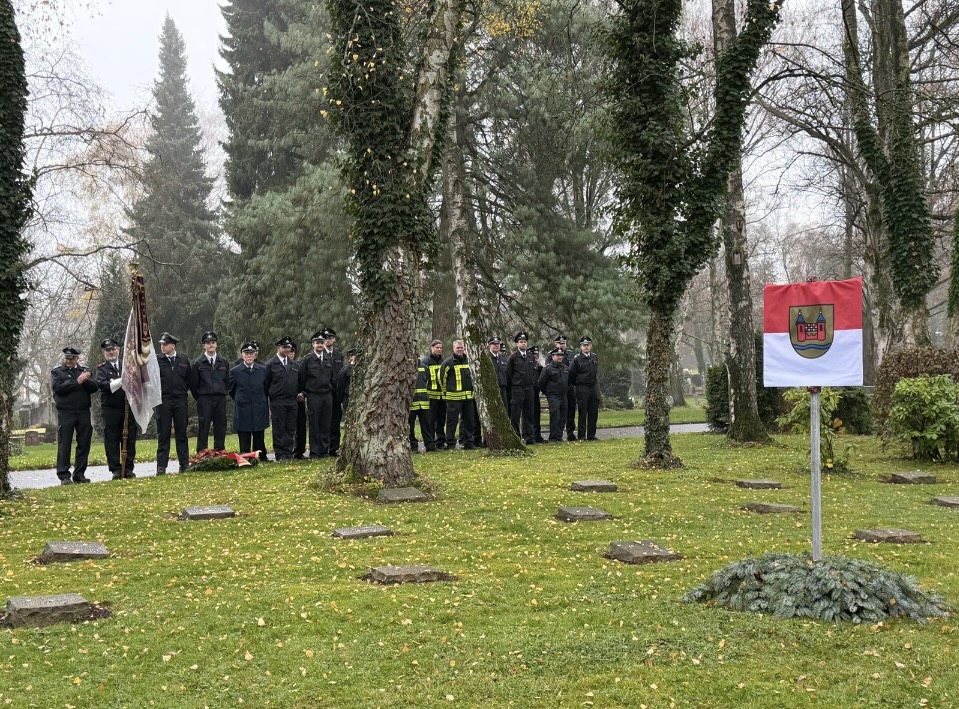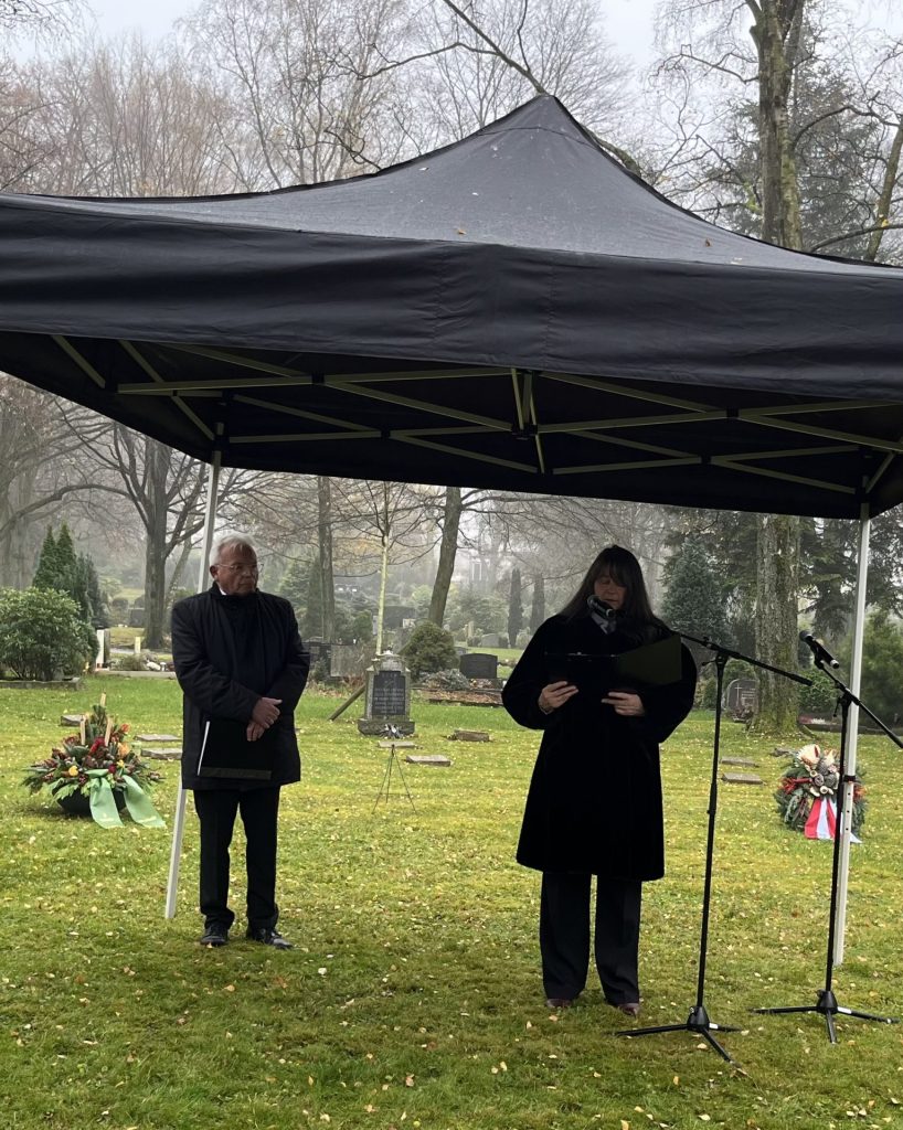 Am Sonntag, den 16. November 2025, fand um 11.30 Uhr die Zentrale Gedenkstunde zum Volkstrauertag am Ehrenfeld der ausländischen Kriegstoten auf dem Friedhof an der Oehde statt.