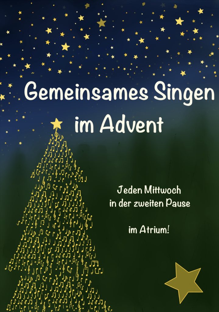 Der Chor unter der Leitung von Musiklehrerin Maike Reichert lädt zum Adventssingen unter dem festlich geschmückten Weihnachtsbaum ein.