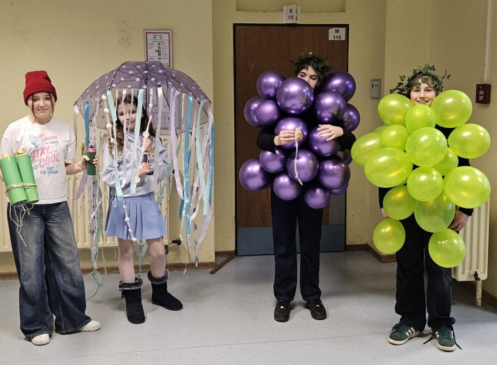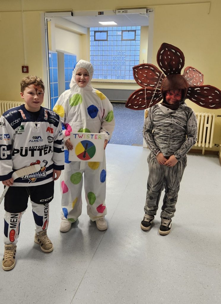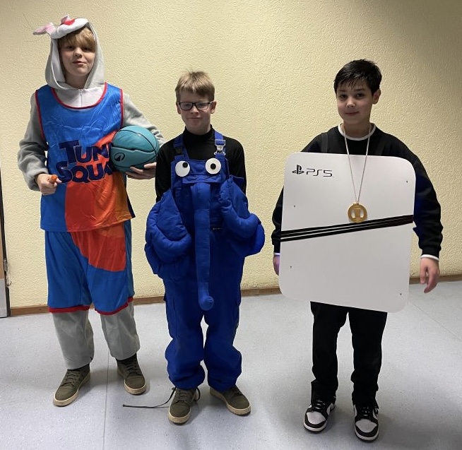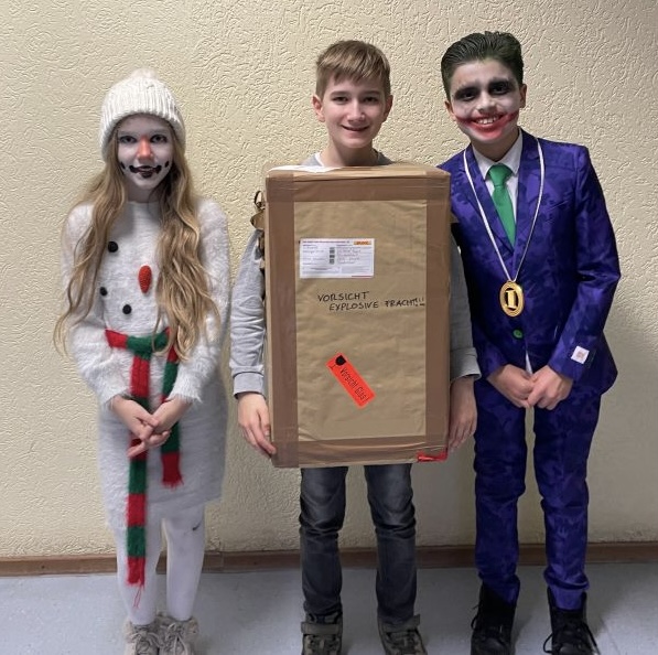 Emil Baumeister, Charlotte Weber, Klara Brieger, Hanna Schlebusch und Frida Regeniter (6a). Sie verkörperten das Spiel Werwolf und besetzten den 1. Platz. Den 2. Platz errang Sammy Grabinski als Demogorgon (6b) und Julian Finke (6a) landete als Chemiker auf Platz 3.
