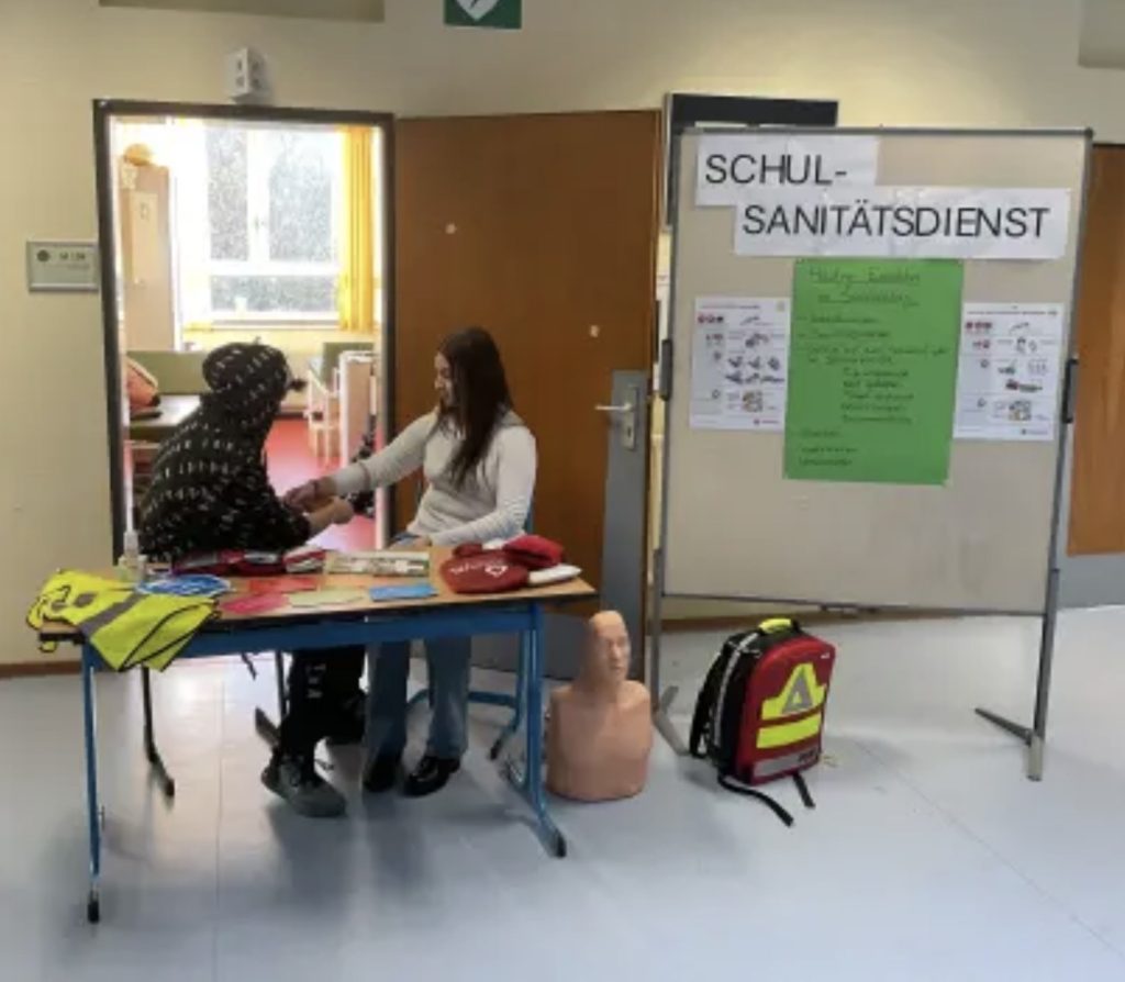 Vom 13. – 15. März 2026 haben insgesamt fünf Schülerinnen und Schüler der Jahrgangsstufe 7 die Ausbildung zur Schulsanitäterin bzw. zum Schulsanitäter absolviert! Damit stehen den Jugendlichen nun die Türen zum Schulsanitätsdienst offen, bei dem sie sich sowohl in den Pausen, aber auch in der Unterrichtszeit um die großen und kleinen gesundheitlichen Anliegen der Schulgemeinschaft kümmern. Zudem bietet ihnen die Ausbildung natürlich auch Handlungssicherheit für Zwischenfälle im privaten Umfeld.